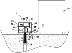 同时,控制器(31)打开第二控制阀(38),水箱(34)内的水经过泄流管(341)进入到环形通道内,再经过环形导流罩(61)的引导后,形成伞状水流;