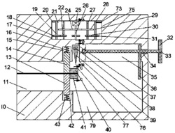 1.一种船帆的剪裁装置,包括机壳,其特征在于:一种船帆的剪裁装置机械结构图,主要包括机壳,所述机壳内设有工作腔和收集腔,所述工作腔内设有帆布,所述机壳内设有移动腔和滑动腔,所述移动腔内滑动连接有的上固定板,所述移动腔内设有连接所述上固定板与所述移动腔的升降弹簧,所述滑动腔内滑动连接有下固定板,所述滑动腔内设有连接所述下固定板与所述滑动腔的抵压弹簧,所述下固定板和所述上固定板抵在一起可将所述帆布进行固定,所述机壳内设有切割机构,所述切割机构包括位于所述机壳内的容纳腔,所述容纳腔内设有可上下运动的刀柄,所述刀柄下端面固定连接有刀片,所述刀片可将帆布进行切割,所述工作腔内设有牵引机构,所述牵引机构包括所述工作腔内设有的上移动固定块以及下移动固定块,所述上移动固定块与所述下移动固定块可对所述帆布进行固定,还可以将所述帆布向右拉动进行进料,所述机壳右侧端壁内设有控制腔,所述机壳内设有贯穿所述控制腔的转动腔,所述转动腔左端壁转动连接有右端位于外界的旋转轴,所述旋转轴右端固定连接有转动把手,所述控制腔内滑动连接有与所述旋转轴螺纹配合的阻挡板,通过人工将转动把手转动可使所述阻挡板左右运动从而限制帆布被切割的长度,所述机壳内设有可给所述下固定板、所述上固定板、所述上移动固定块、所述下移动固定块、所述刀柄运动提供动力的驱动机构。