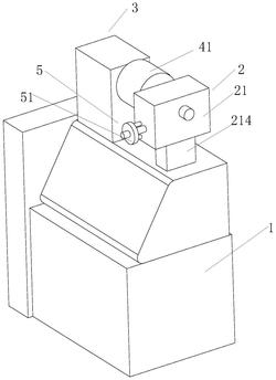 所述第一杆体(213)位于第一滑槽(212)外的一端设置有拉伸组件(5);所述拉伸组件(5)包括固定盘(51);所述第一杆体(213)位于第一滑槽(212)外的一端转动连接有转动杆(52);所述固定盘(51)固定接在转动杆(52)中部;所述固定盘(51)上下两侧呈对称固接有一对横杆(53);所述第一壳体(21)与横杆(53)对应位置处开设有一对第三滑槽(54)。