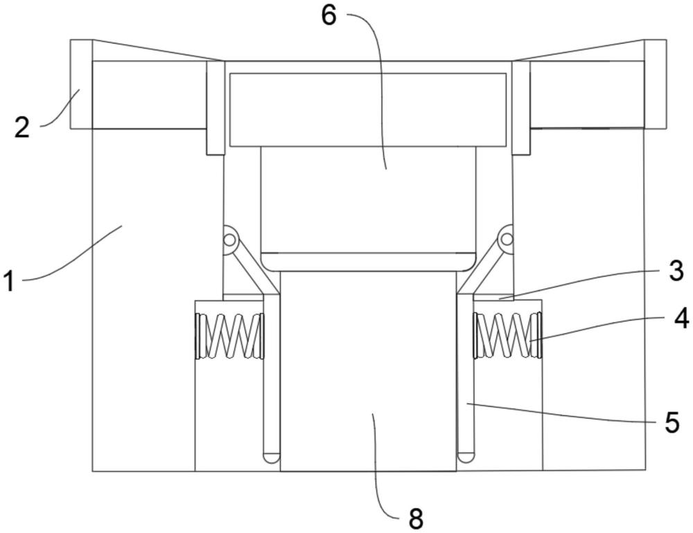 1.一种建筑施工用辅助排水结构,包括外壳(1),其特征在于,所述外壳(1)的形状为圆筒状,所述外壳(1)的外壁面上部设有橡胶环(2),所述外壳(1)的内壁面设有一对弹簧(4),所述外壳(1)的内壁面铰接有一对弧形杆(5),一对所述弧形杆(5)分别与一对所述弹簧(4)相连接,所述外壳(1)的内壁面之间设有限位环形板(3),所述外壳(1)内放置有漏斗(6),所述漏斗(6)的下端设有直筒(8),所述直筒(8)内设有滤网(9)。